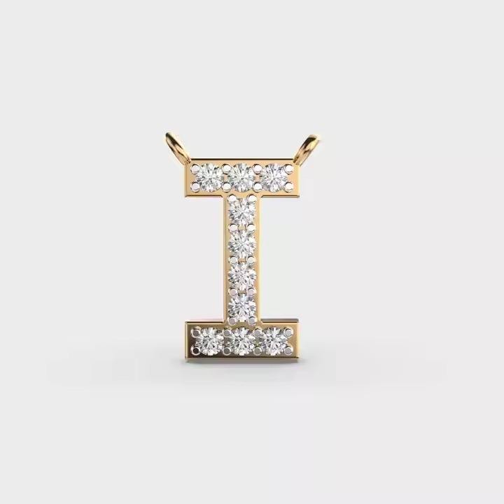 18KT Rose Gold Pendant with Diamond Rhodium Plated Alphabet Design for Gift