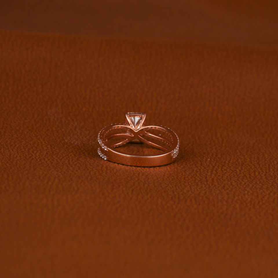 18KT Rose Gold Plated Split Shank Engagement Ring Hidden Halo with Radiant Cut Lab Grown Diamond Perfect Birthday Gift