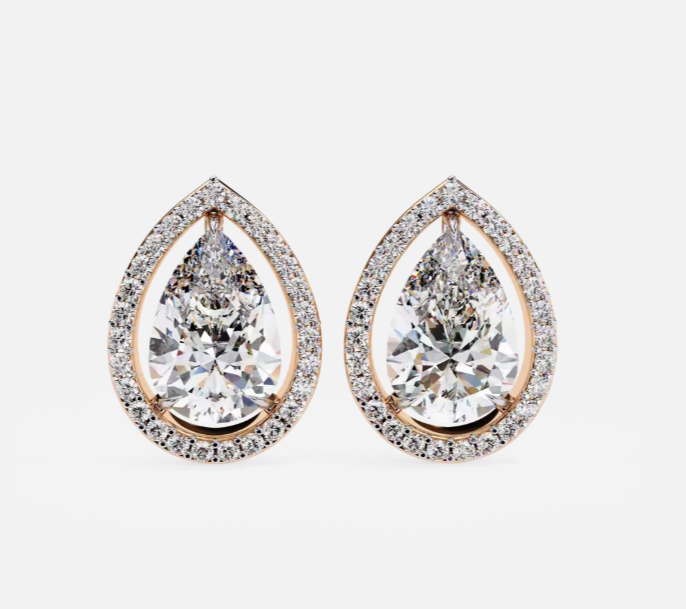 18KT Yellow Gold 0.80ct Lab Created Pear Cut Halo Stud Diamond Ethnic Wedding & Anniversary Gifts Earrings for Women