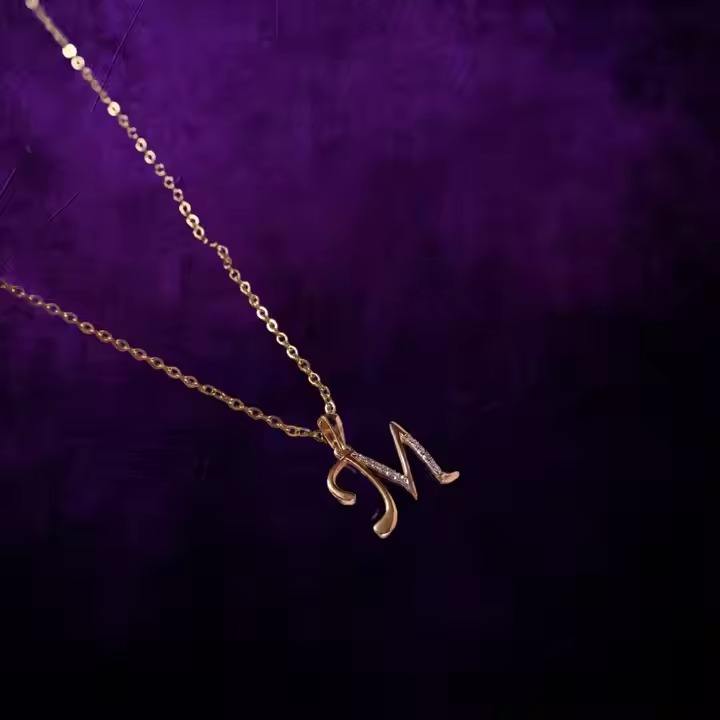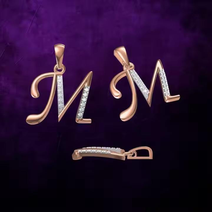 18Kt Luxury Gold Alphabet MPendant with Lab Grown CVD Diamond Moissanite Pendants & Charms Unique Design