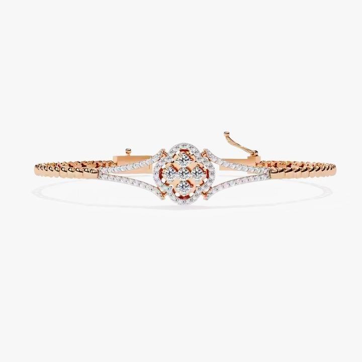 18Kt Silver Gold 9.7g Moissanite Bracelet Elegant 0.4760 Ct Diamonds 0.4760 Ct Moissanite Bangles Unique Diamond Jewelry