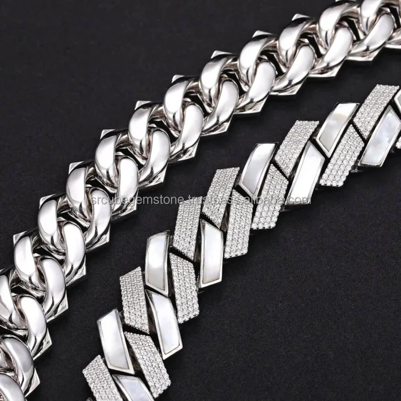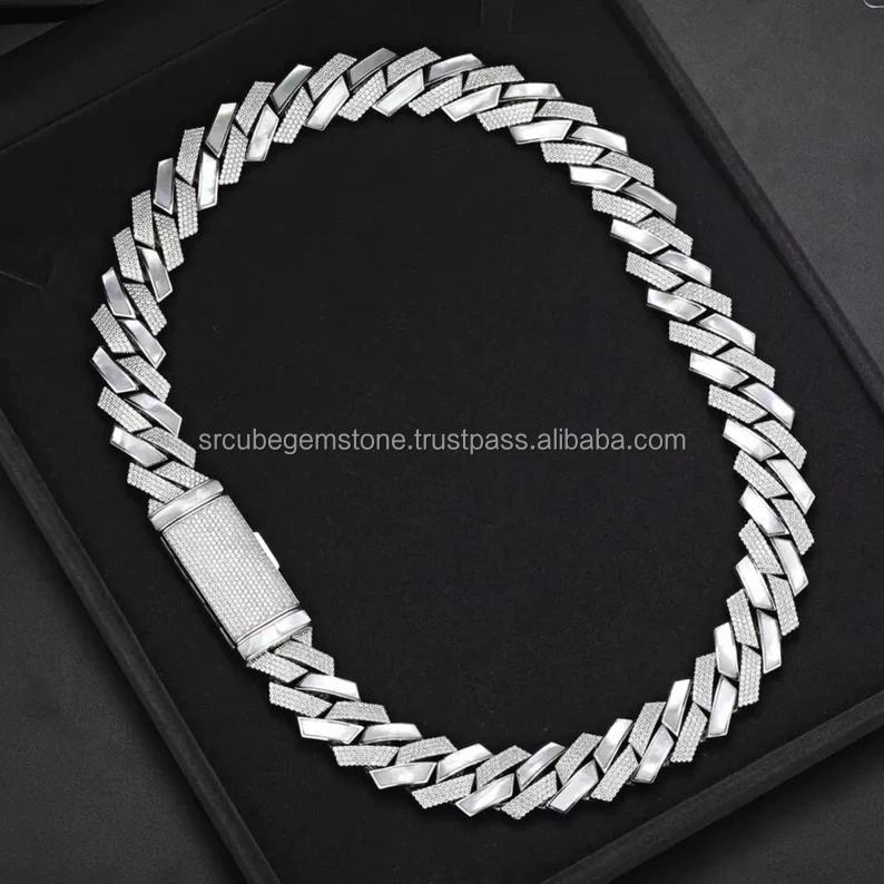 18MM Handmade 925 Sterling Silver VVS Moissanite Iced Cuban Link Chain Passes Diamond Tester for Party-Handmade Setting Shell