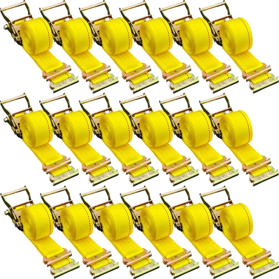 18PCS Durable E-Track Ratchet Tie-Downs 2\" X 15' Polyester Webbing Strap for Motorcycles Tire Trailer Loads 4400 LBS Breaking