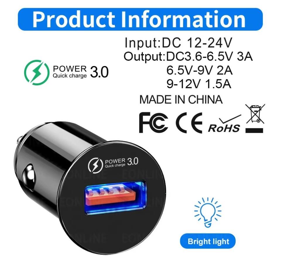 Feature:QC3.0 18W Mini Car Charger