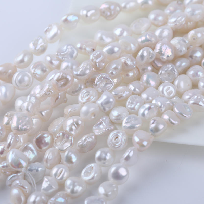 18cm 7-8mm Natural Freshwater Button Shape Beads Straight Hole Regenerated Baroque String for DIY Jewelry Bracelet