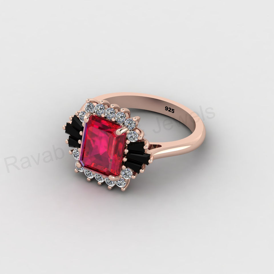 Product Name:Black Onyx & Ruby Quartz With CZ Diamond Designer Octagon Prong Ring