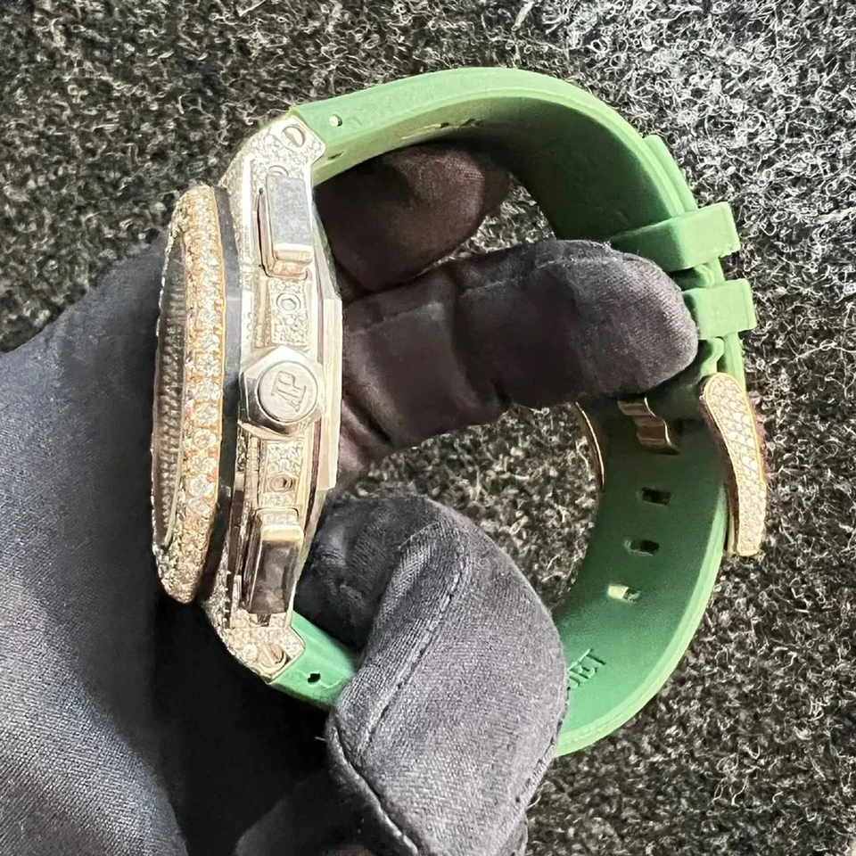 18k Gold Plated Diamond Watch Moissanite Men's Luxury Wrist Watch Hip Hop Watch With Green Rubber Balt