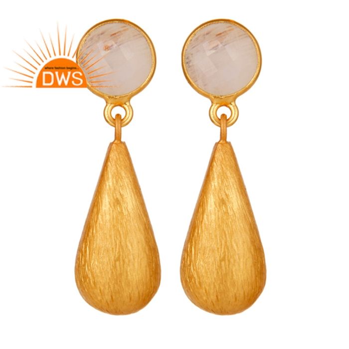18k Gold Plated Drop Dangle Earring 925 Sterling Silver Jewelry Natural Rainbow Moonstone Earring Jewelry Manufacturer