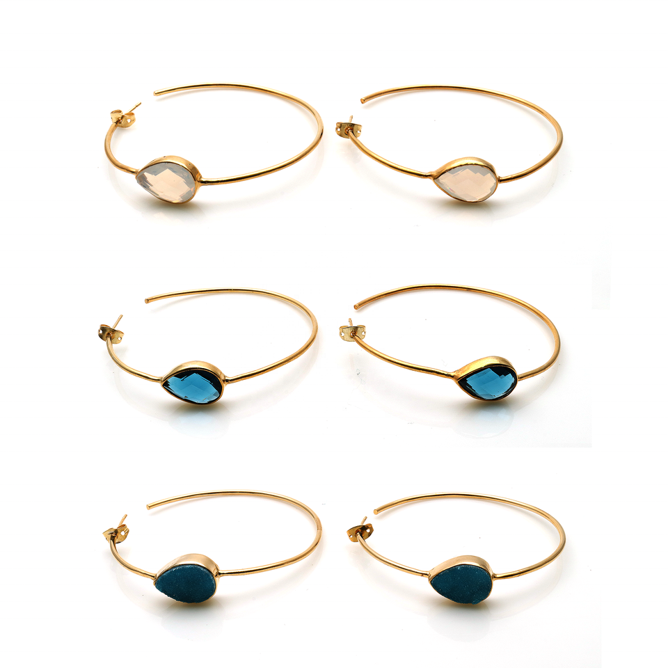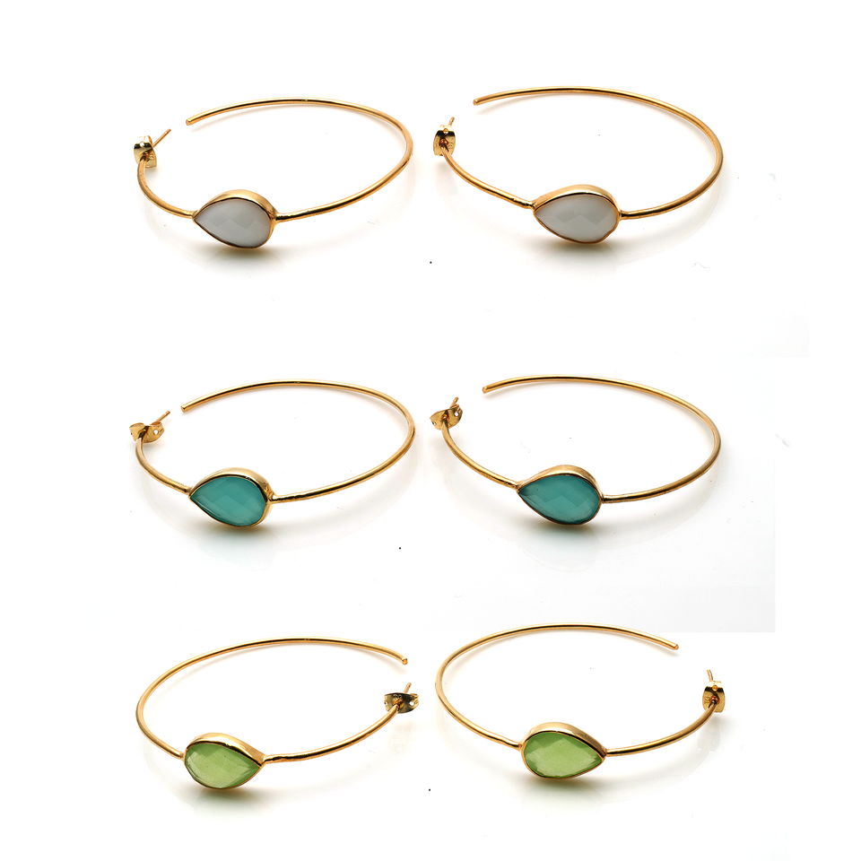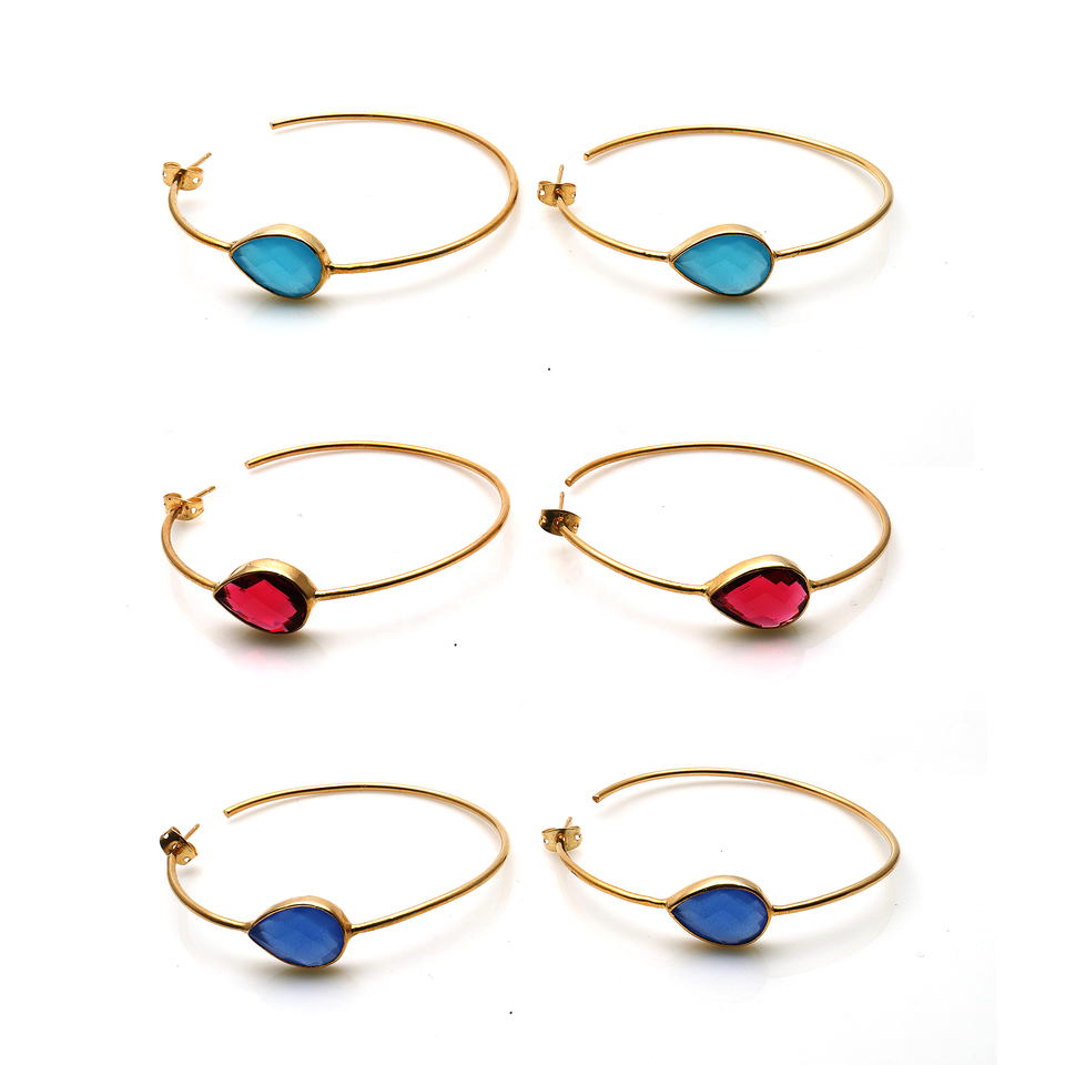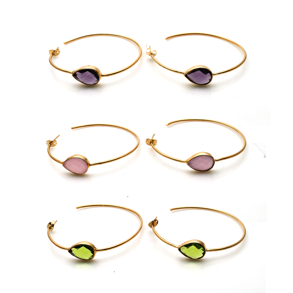 18k Gold Plated Handmade Gemstone 55 MM Long Hoop Earrings Finding Brass Jewelry