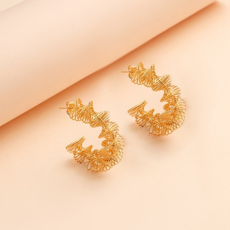 18k Gold Plated Hypoallergenic Stainless Steel Personalized Fashion Jewelry Twist Spring Vintage C Hoop Earrings for Women