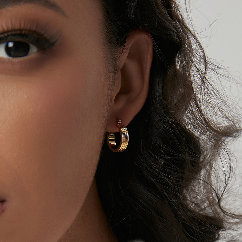 18k Gold Plated Minimalist Geometric Earrings Copper Statement Hoop Earring Textured Hoop Earring for Party