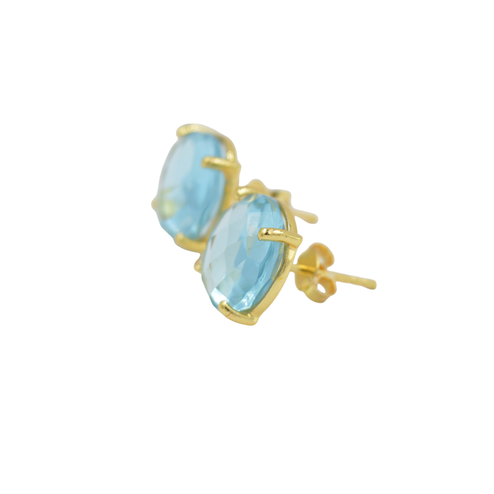 925 Solid Sterling Silver Stud Earrings 18K Gold Plated Natural Blue Quartz Gemstone Trendy for Weddings Great Gift Idea