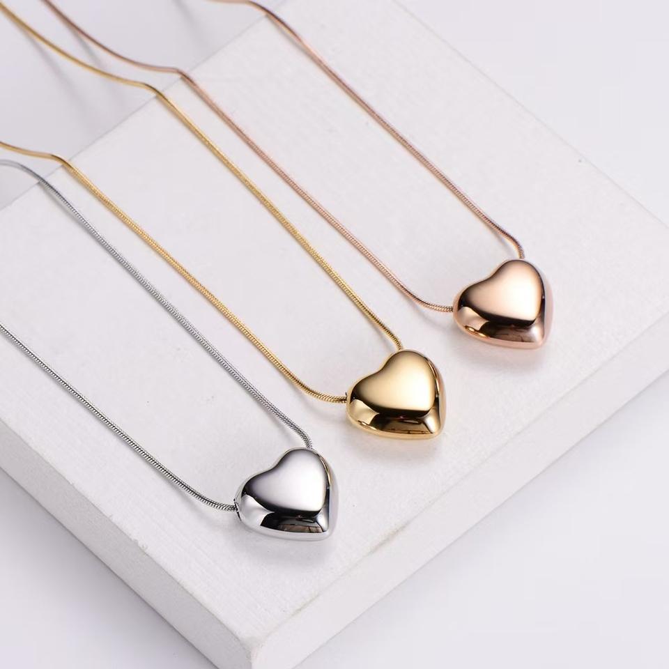 18k Gold Plated Stainless Steel Minimalist Style Shiny Heart Shaped Pendant Necklace for Women Gift