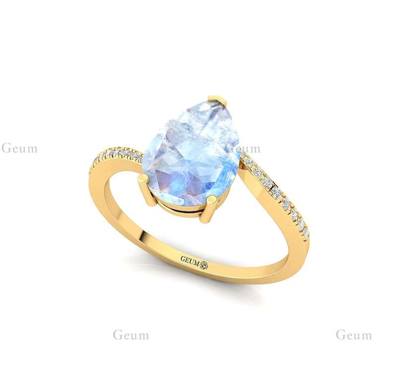 High Quality Pear Cut Rainbow Moonstone Birthstone Rings Ladies Wear Stylish Handmade Dainty Rings with Diamonds Bulk OEM