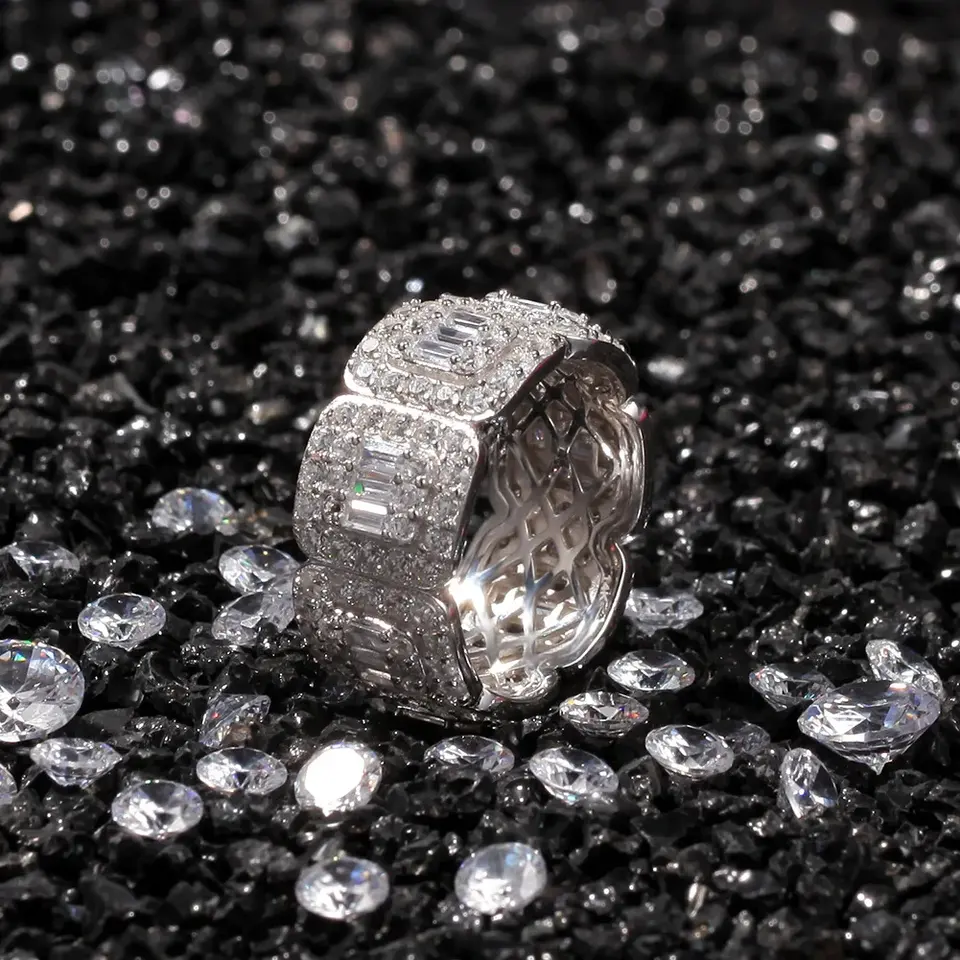 18k Real Gold Brass Heart Ring Men Women 5A Zircon Claw Setting Hip Hop Bling Jewelry Lab Created Stone Fashion Finger Ring