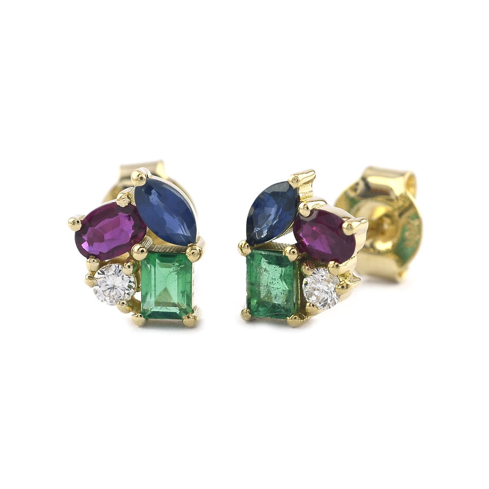 18k Solid Yellow Gold Multi Natural Stone With Diamond Earrings Irregular Shape Stud Earrings Woman