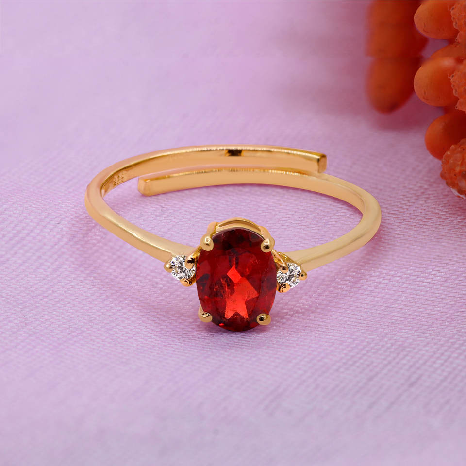18k Yellow Gold Plated 925 Sterling Silver Real Garnet Gemstone Ring With Cubic Zirconia Accents For Engagement Wedding Rings