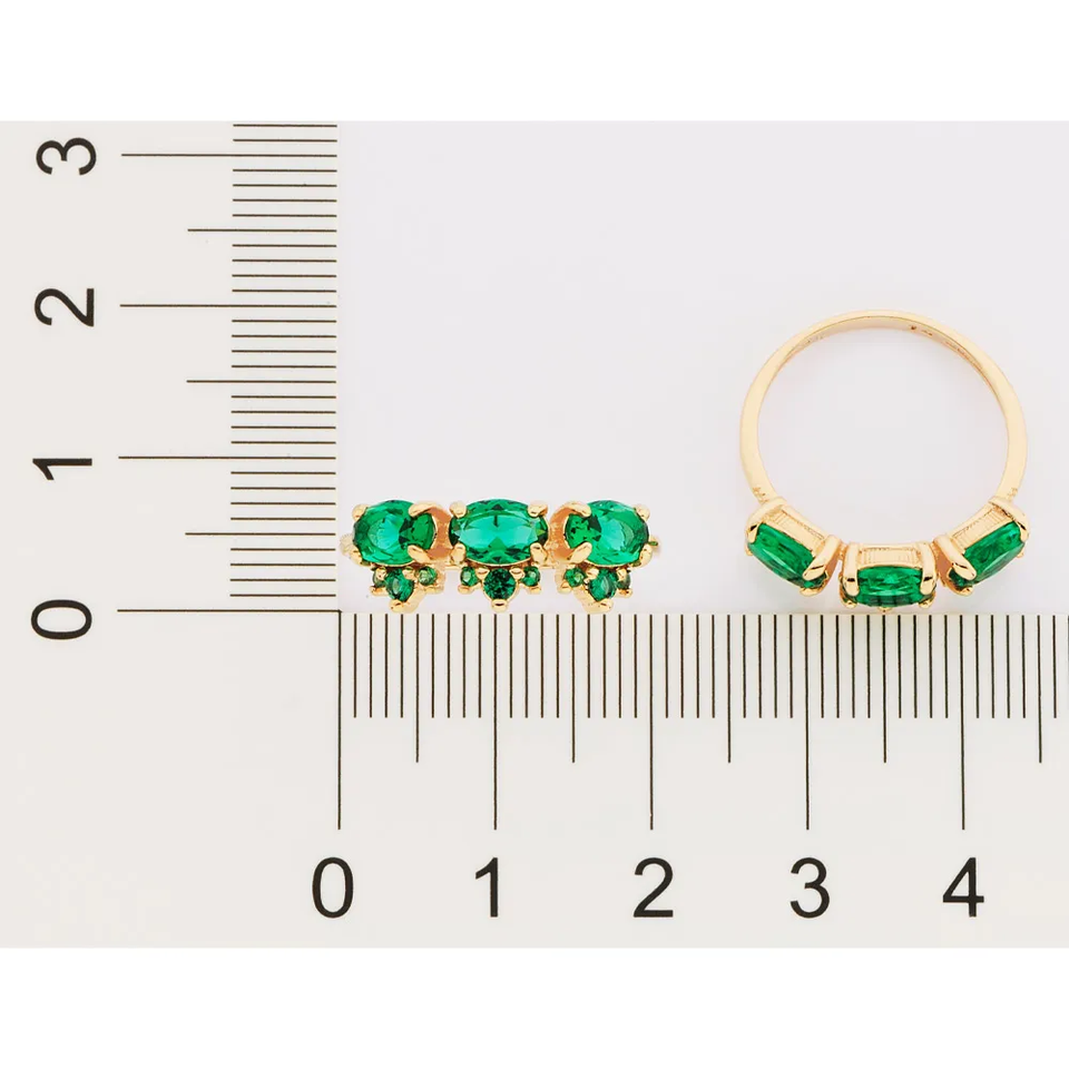 18kt Original Yellow Gold Positivity Ring for Women 3 Big Green Emerald Cut Solid Diamonds & Moissanite IGI Certified Jewelry