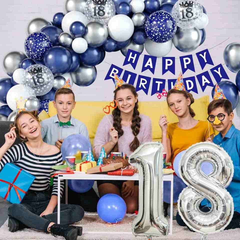 18th Birthday Decorations Blue Happy Birthday Bunting Banner Silver Balloons Arch Kit Silver Party Decor Men Women Anniversary