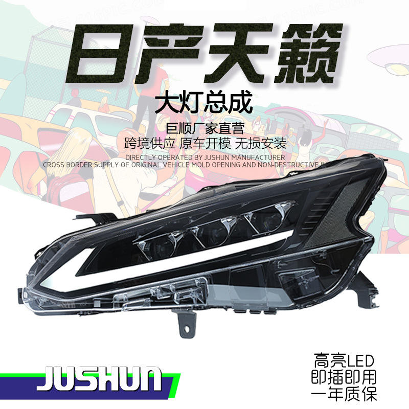 19-21 for Nissan Teana Headlamp Assembly Modified LED Lens Low Beam EL 12V Daytime Running Light Steering Streamer Three Lenses