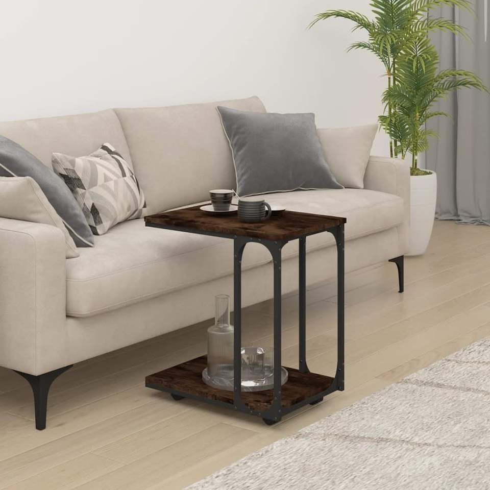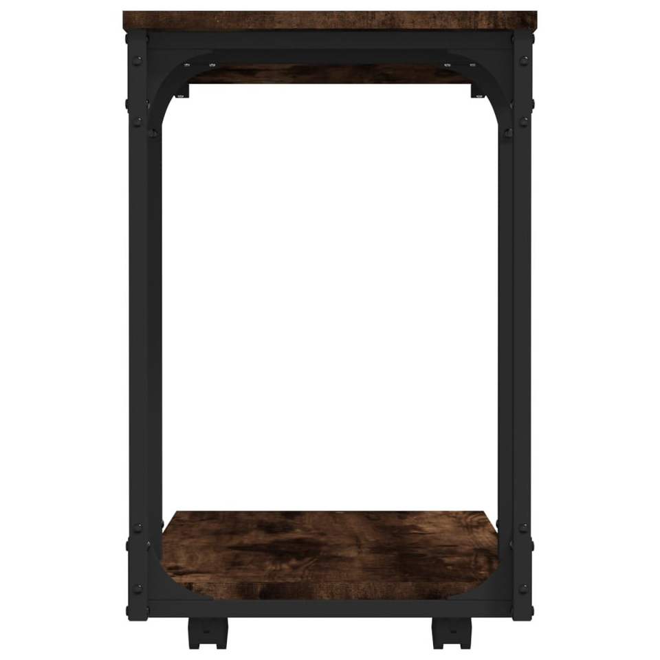 19.7\"x13.8\"x21.9\" Smoked Oak Engineered Wood Side Table with Wheels for Living Room Furniture