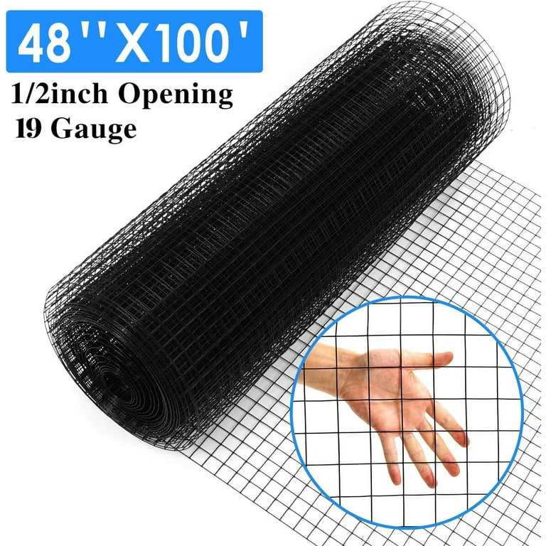 19 Gauge Heavy Duty 48in X 50ft Chicken Wire Fencing 1/2 Inch Mesh Vinyl Coated Black Hardware Cloth for Construction