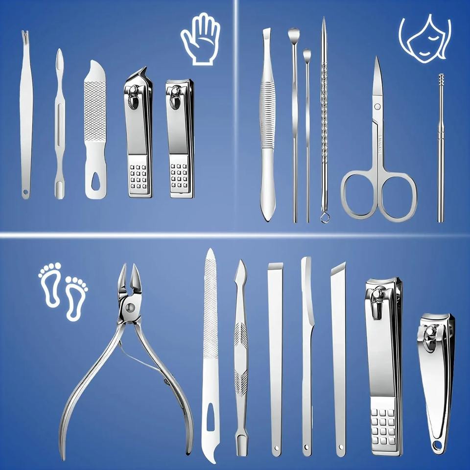19 in 1 Professional Nail Clippers Pedicure Kit Manicure Tool Kit Stainless Steel Facial Grooming Set Kit Gift Idea for Women