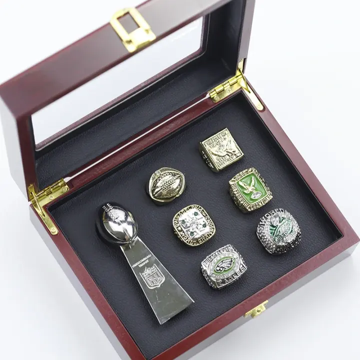 1948/1949/1960/1980/2004/2017 Rose Gold Plated Alloy Philadelphia Eagle Ring + NFL Trophy