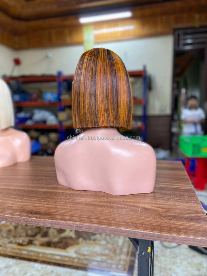 1B Honey Brown Straight Bob Wig 4/27 Color Piano Bob Weave Highlighted with Reddish Tones HD Lace Front High Quality Human Hair
