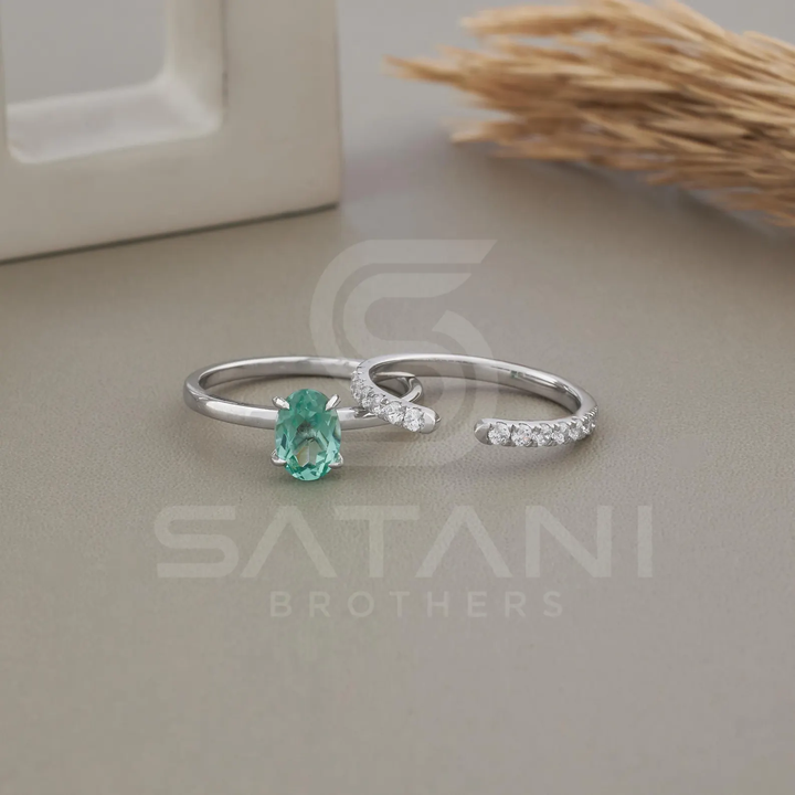 1CT Oval Cut Diamond Moissanite Engagement Ring Set 14K Solid Gold Dainty Bridal Wedding Band Set For Women Wife Gift