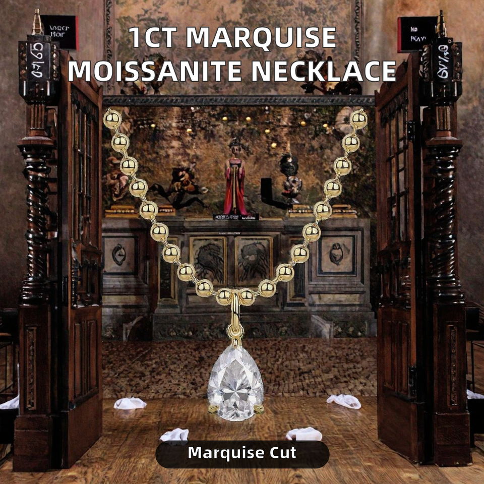 1CT Pear Cut VVS1 Moissanite Diamond Pendant Necklace Women's Gift S925 Sterling Silver Gold Plated Third Party Certified