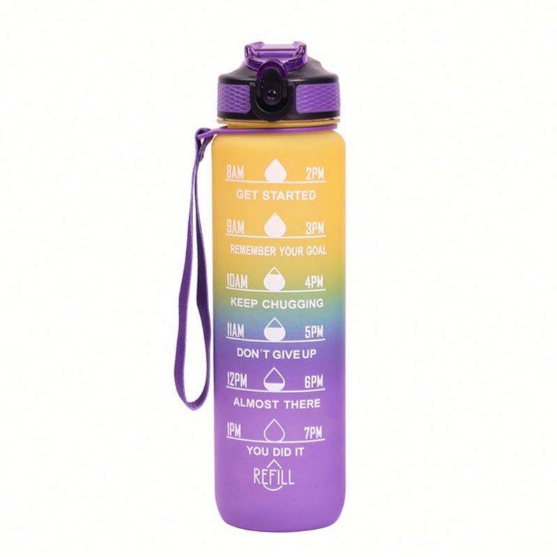 1L 32 OzCustom Plastic Straw Strainer Filter Gym Sports BPA Free Tritan Motivational Water Bottle With Time Marker