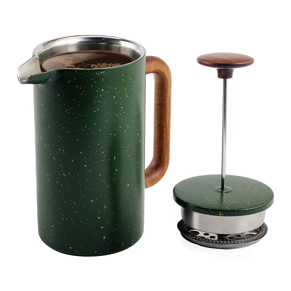 1L Double Wall Stainless Steel French Press Coffee Maker With Wooden Handle
