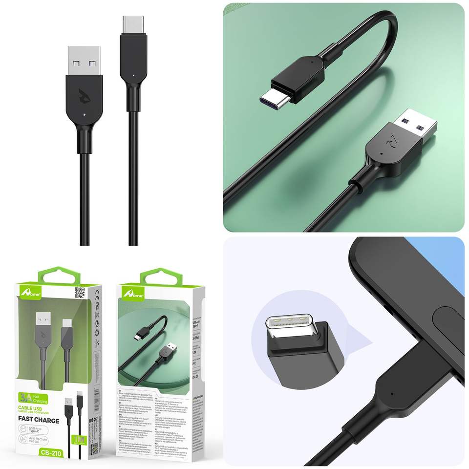 1M 3A Type C Cable 3A Fast Charging Dam Calble CB-210 for USB Devices & Mobile Phones White