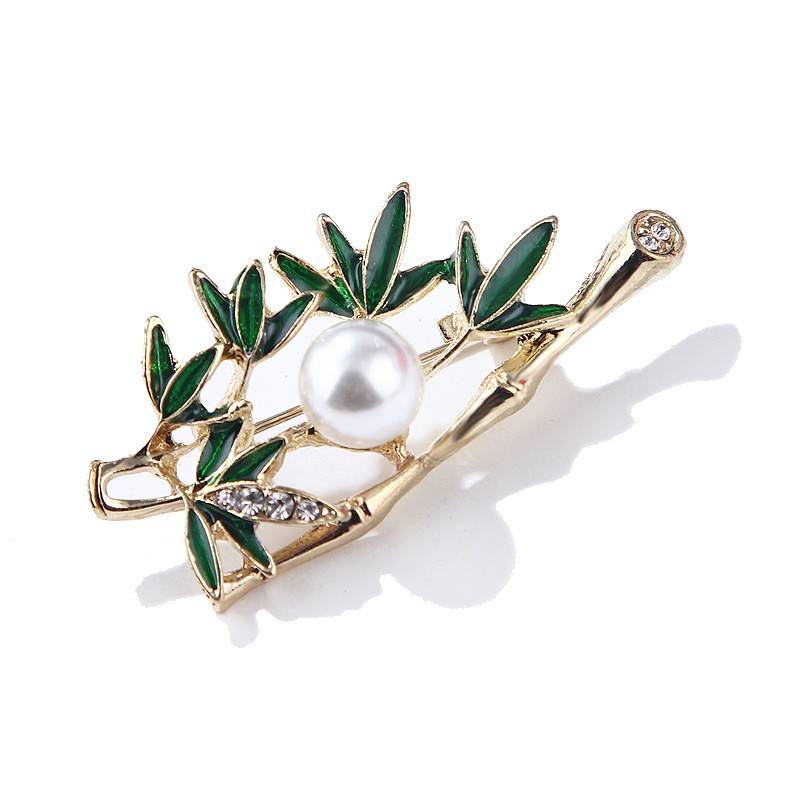 1PC Blue Hao Korean-style Artistic Glazed Temochloa Elegans Bamboo Leaf Pearl Alloy Brooch Shawl Fashionable Fashion Brooches