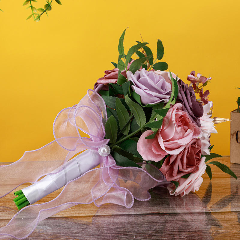 1PC Cross-border New Wedding Supplies Western-Style Flower Fresh Cut for Bridesmaid Pink + Light Purple 22*29cm