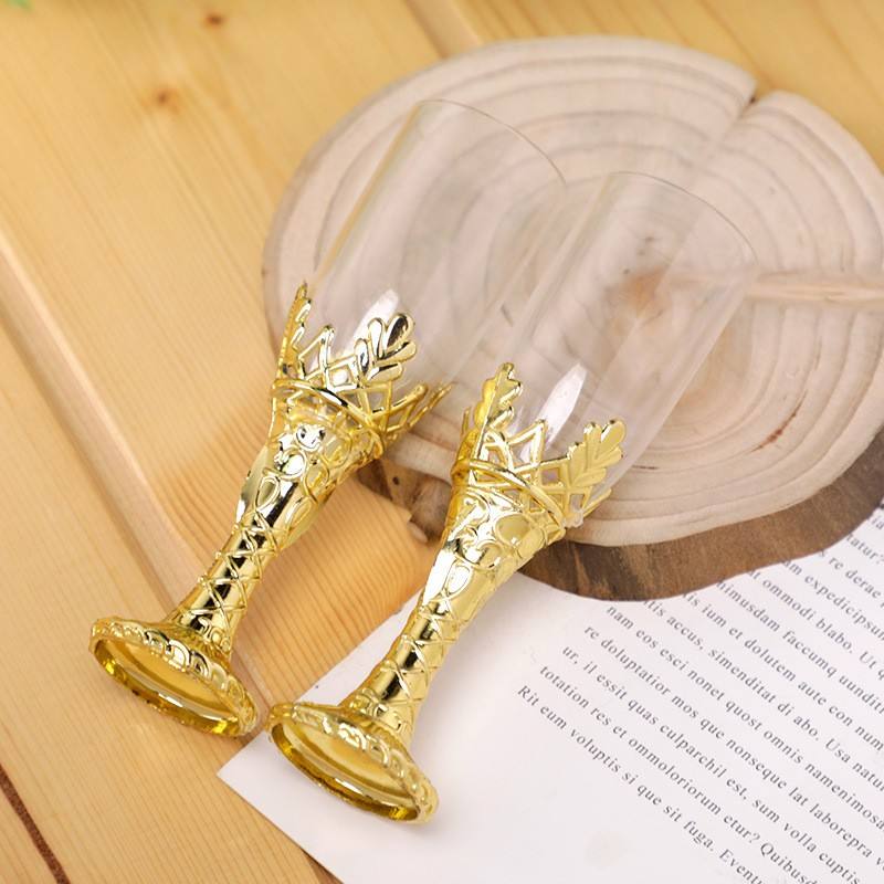 1PC Golden Plastic Goblet-Shaped Dessert Cup Creative Tableware for Festive Table Decorations Export Quality Wine Glass Parties
