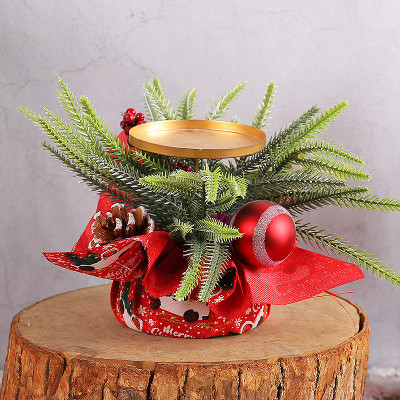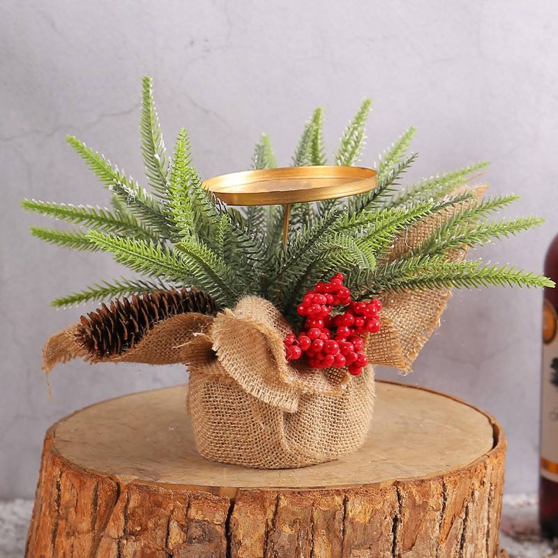 1PC Red Berry Pinecone Candle Holder - Trumpet Shape Christmas Tree Decor for Holiday Home & Party Wholesale