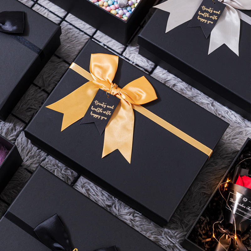 1PC Men's Black Gift Box Heaven and Earth Cover with Creative Bow Rectangle Design Large Paper Packaging for Gifts