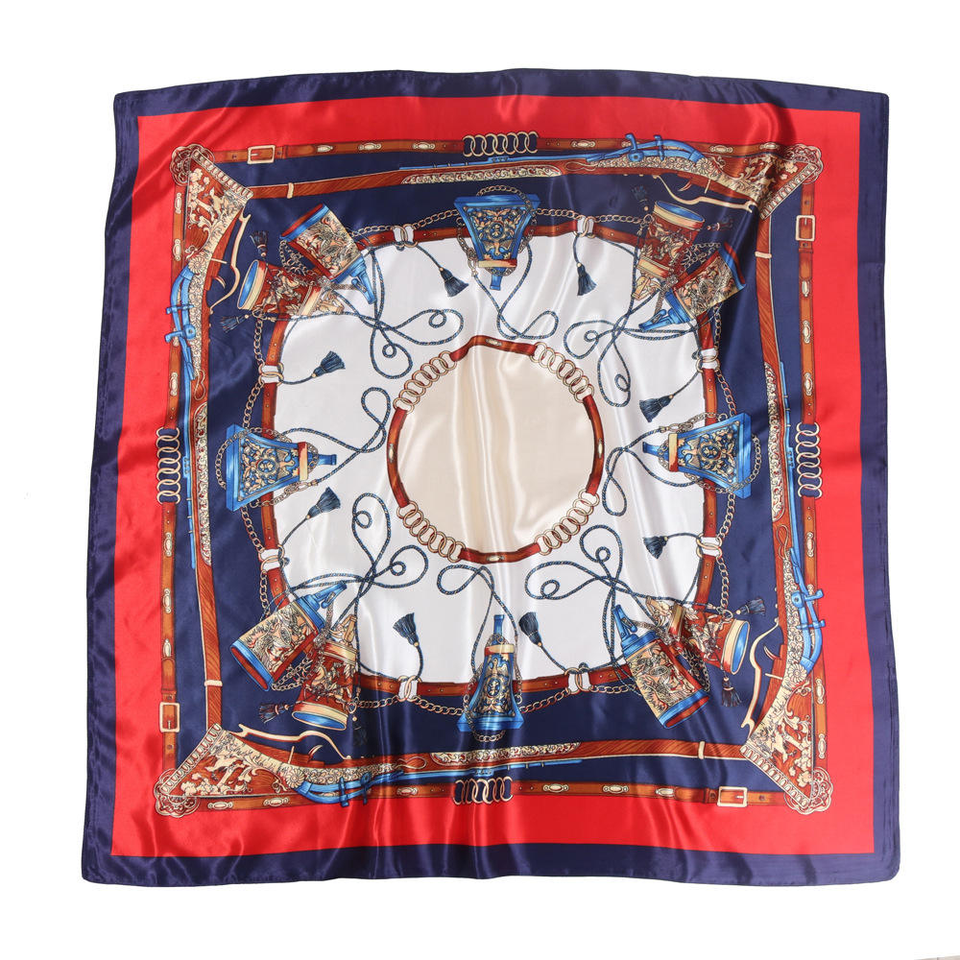 1PC New 90cm Satin Large Square Scarf Thin Shawl Headscarf with Chain Print for Export to Russia for Foreign Trade