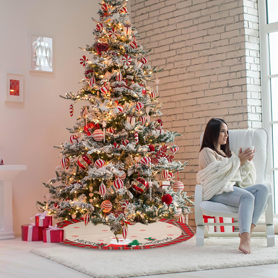 Red Plaid Christmas Tree Skirt Mat - Humanoid Tree-Hugging Style Xmas Tree Stand Accessory for Cross-Border Holiday Decoration