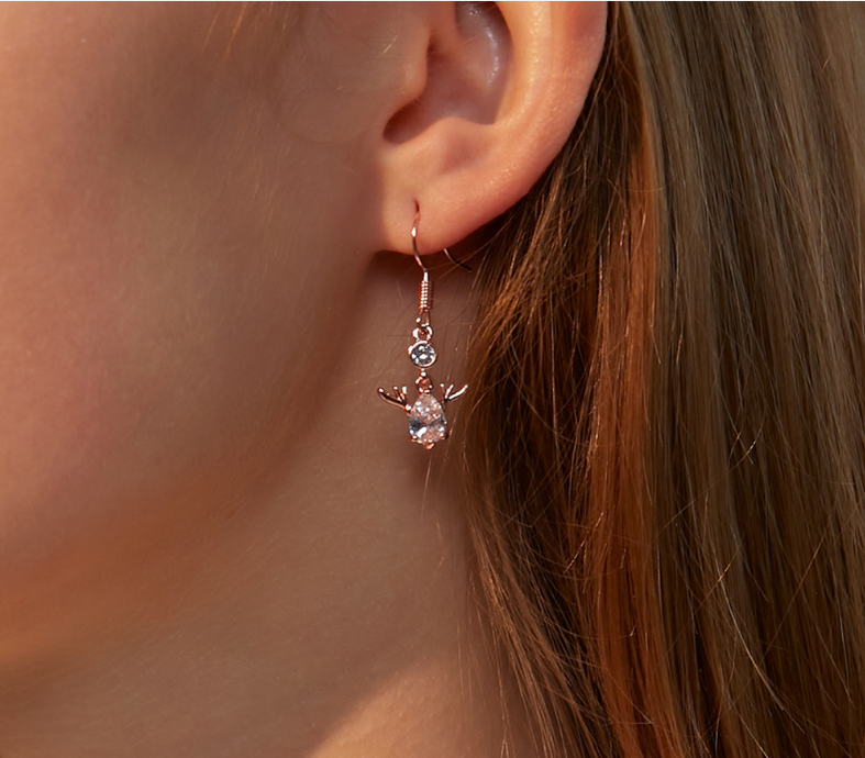 1PC Popular Christmas Crystal Earrings Sweet and Cute 'Deer with You' Fresh and Creative Holiday Gift