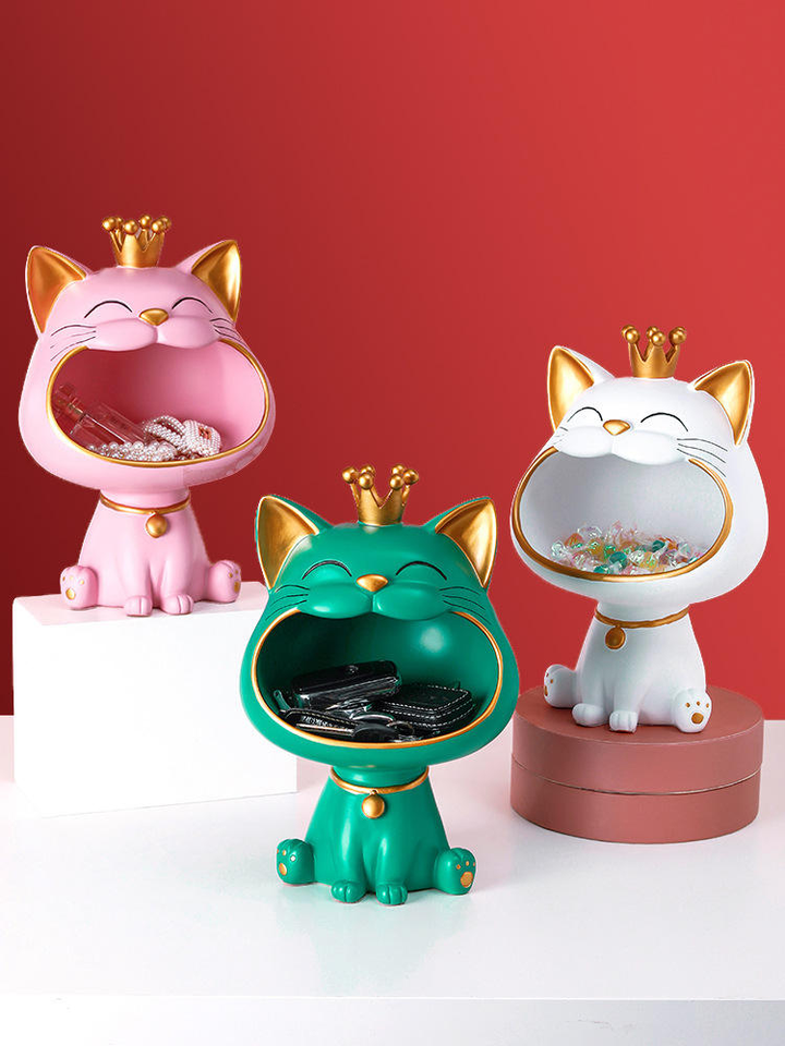 1PC Resin Craft New Cute Big-Mouth Cat Storage Organizer for Living Room Bedroom Entryway Perfect Key Holder Desktop Drawer