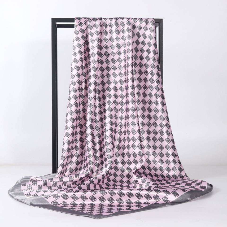 1PC Satin Sateen Large 90*90cm Square Scarf & Handkerchief Casual Headscarf with Houndstooth Chain Print for Everyday Use