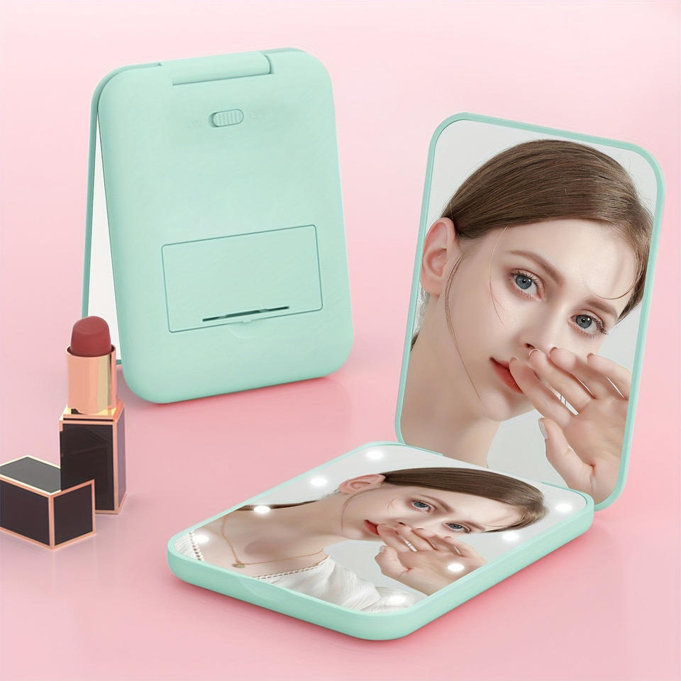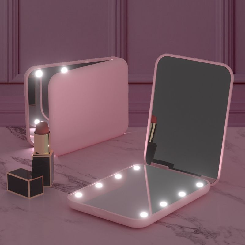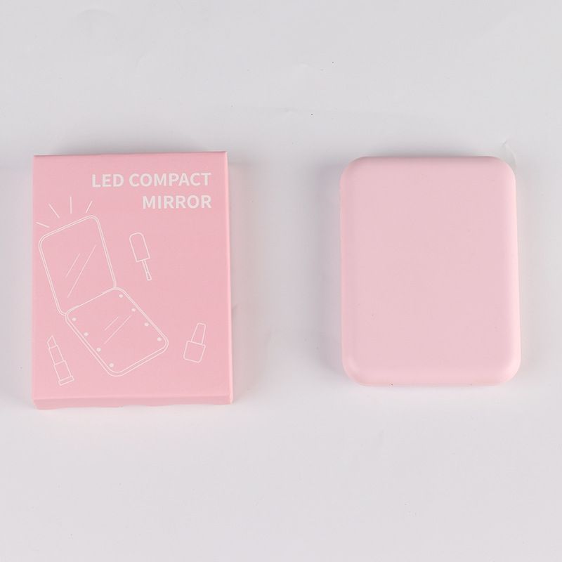 1X/2X Magnification LED Makeup Mirror with Light for Purse Custom Logo Pink Pocket Mirror Small Lighted Mirror for Gift