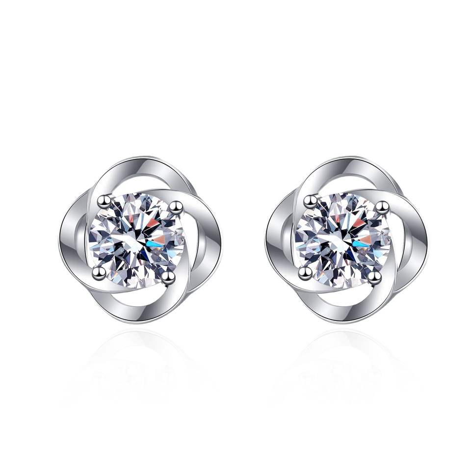 1ct Moissanite Four-Leaf Clover Stud Earrings Original 925 Silver Perfect Birthday Gift for Women Engagement Gift Idea