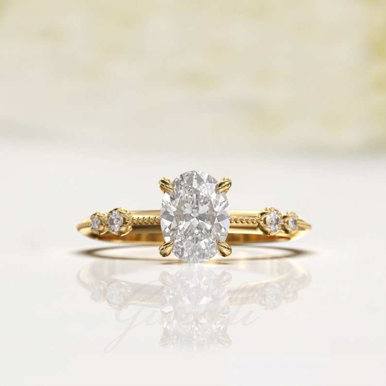 1ct Unique Oval Cut Engagement Ring 6X8mm Lab Grown Diamond With 1.3mm Knife Edge Band in 14k Solid Gold for Weddings & Parties
