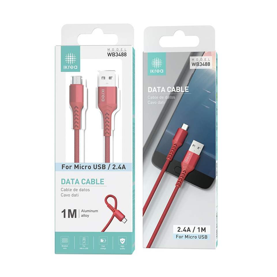 1m 2.4A Red Micro USB Data Cable Fast Charging 3A Pure Copper & Aluminum Alloy for IOS in Box Packaging