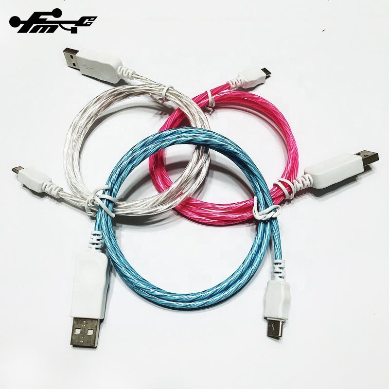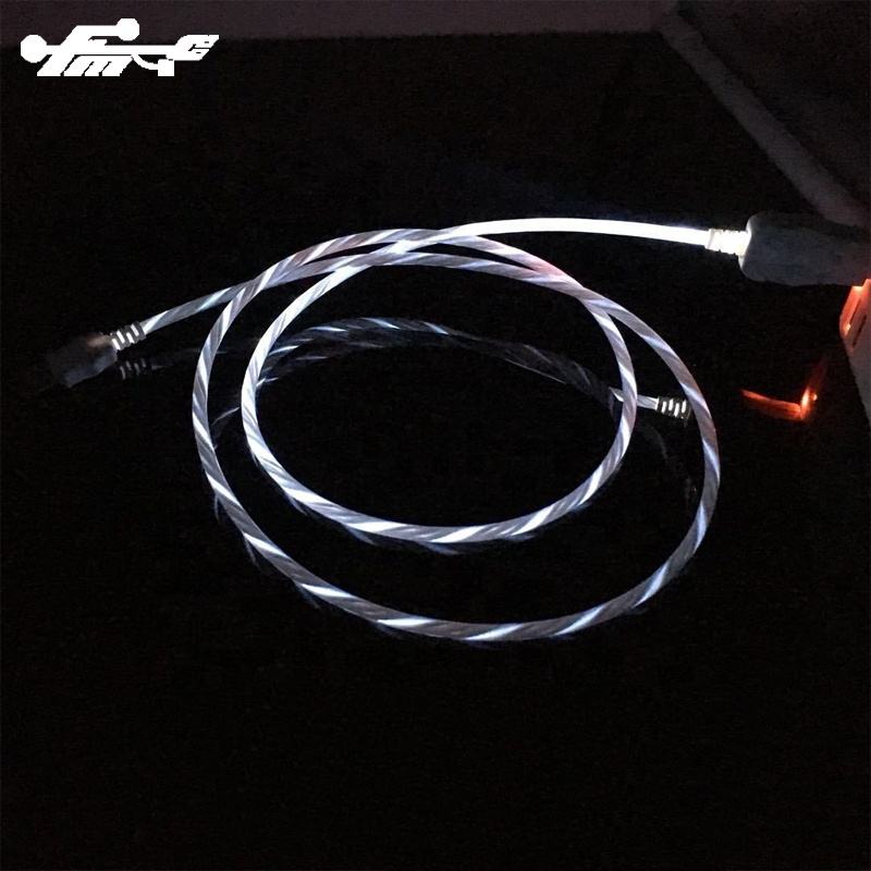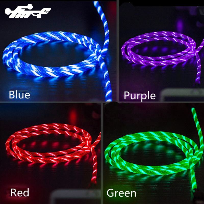 1m Long Pure Copper LED Light Flowing Visible USB Charger Cable for iPhone PVC Jacket with Luminescent Charging Feature