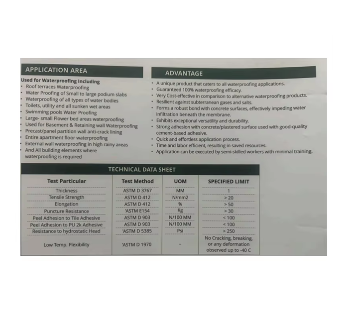 1mm Geo Proof Waterproofing Membrane Multi Purpose Ideal for Roofing Foundation and Tunnel Waterproof Protection